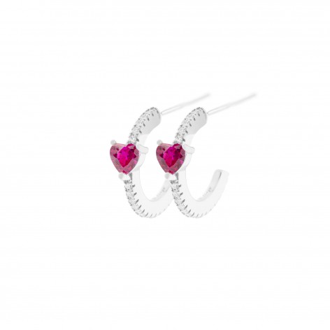 Orecchini Pendenti In Argento 925 Con Zirconi Bianchi E Cuore Zircone Rosso Centrale