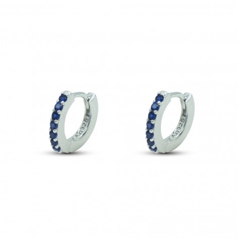 Orecchini In Argento 925 Modello A Cerchio Da 1 cm con Zirconi Blu.