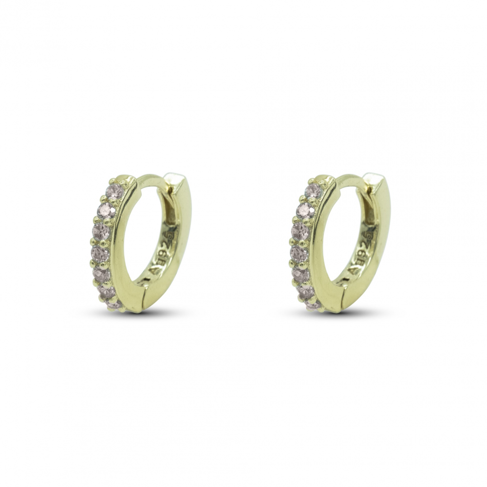 Orecchini In Argento 925 Dorato Modello A Cerchio Da 1 cm con Zirconi Champagne.