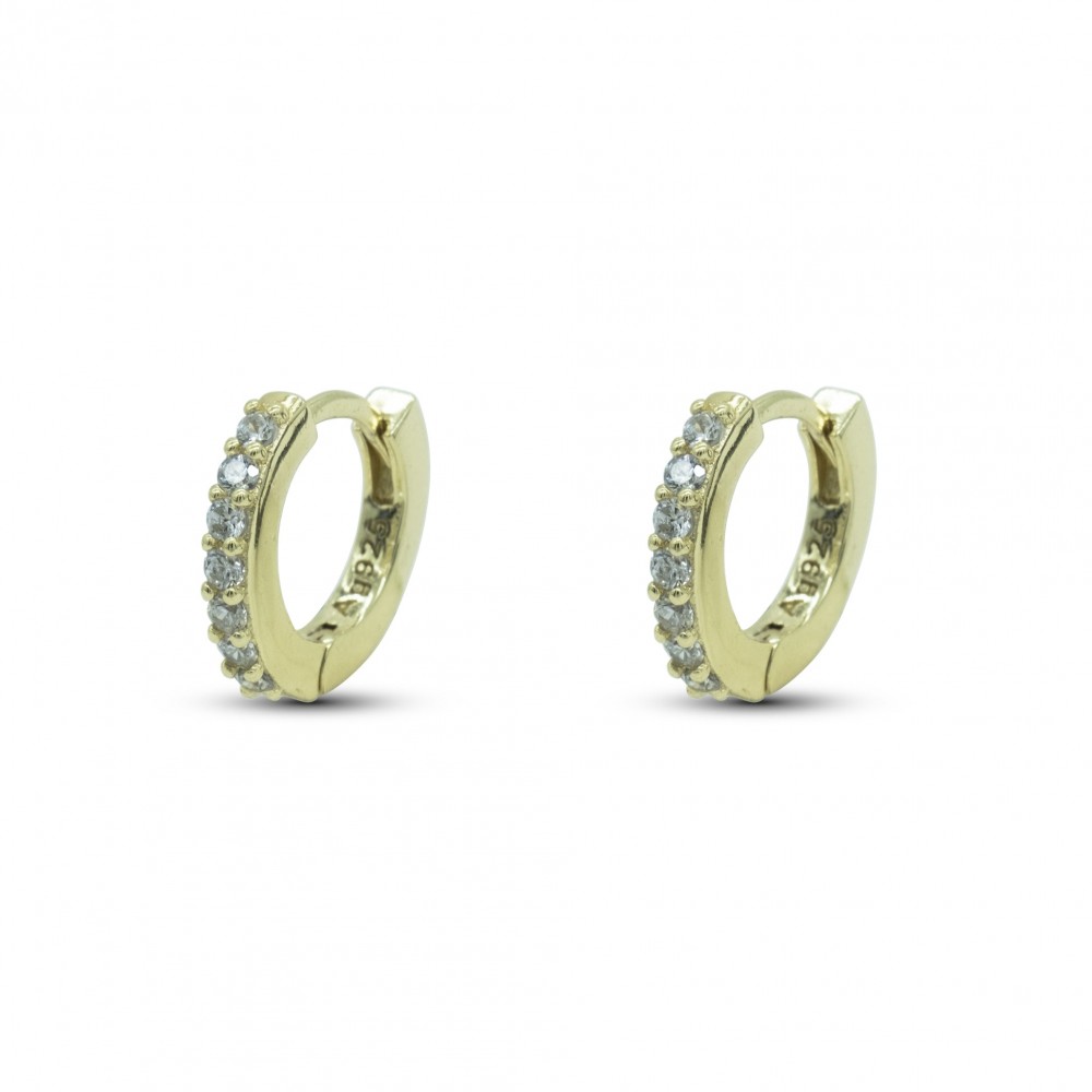 Orecchini In Argento 925 Dorato Modello A Cerchio Da 1 cm con Zirconi Bianchi.