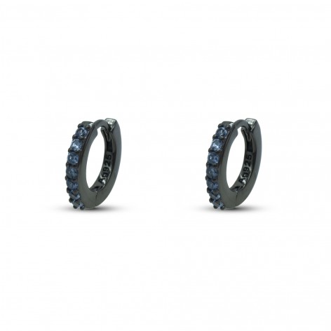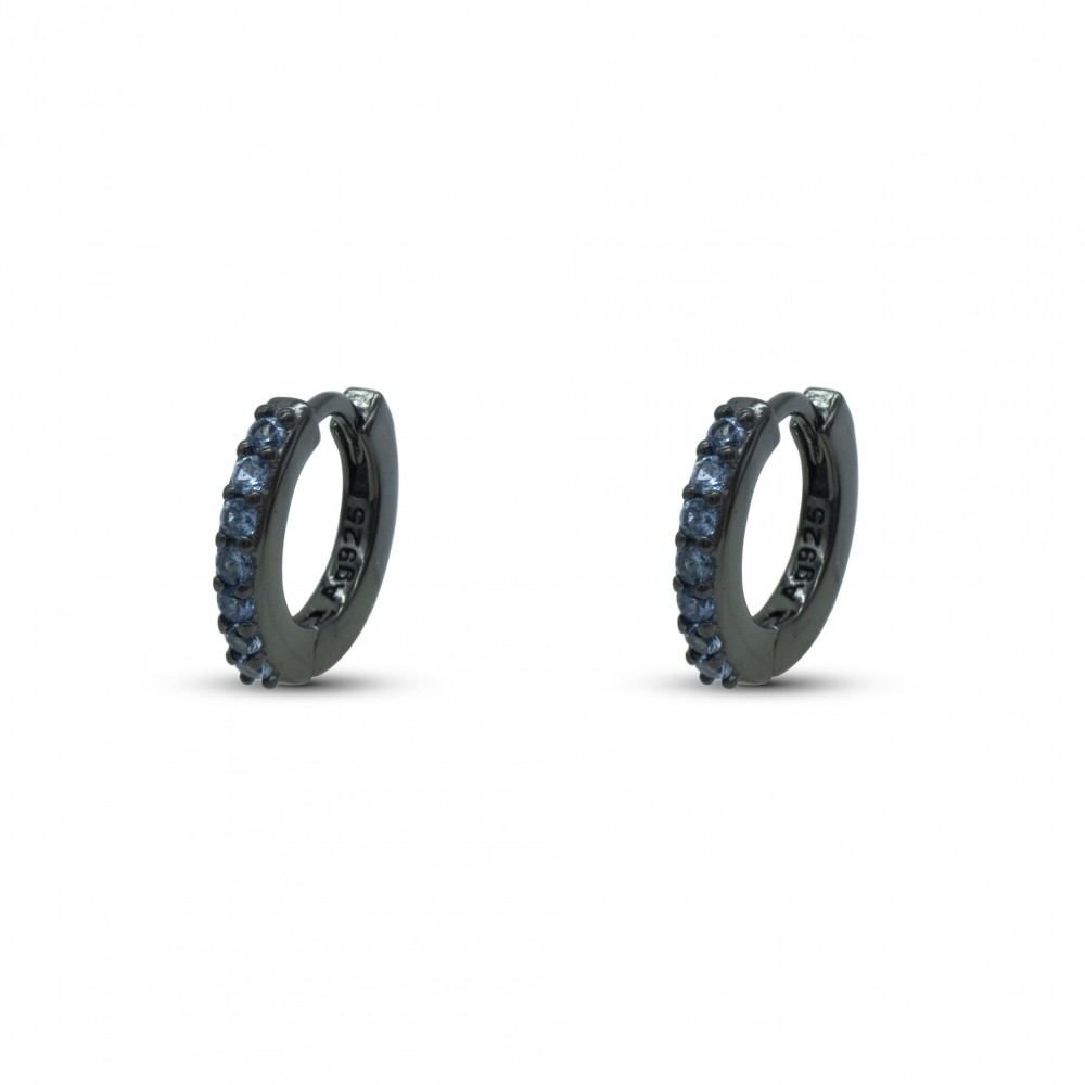Orecchini In Argento 925 Nero Modello A Cerchio Da 1 cm con Zirconi Azzurri.