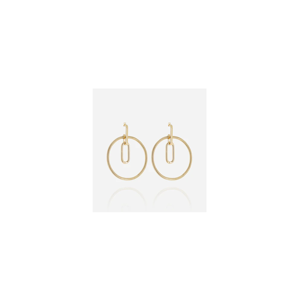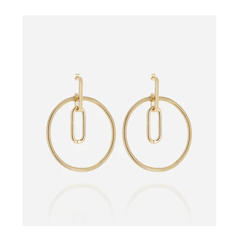 Orecchini In Acciaio Placcato Oro, Modello Cerchio con catena