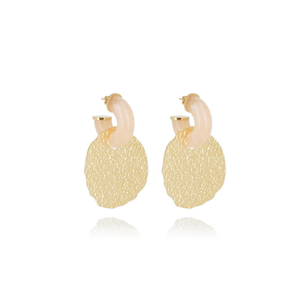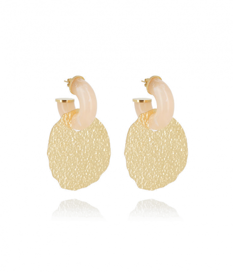 Orecchini A Cerchio In Resina Con Piastra In Acciaio Martellato Arrotondata.