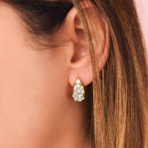 Orecchini In Bronzo Placcato Oro A Lobo Impreziositi Da Zirconi Bianchi. Chiusura Con Gancio.