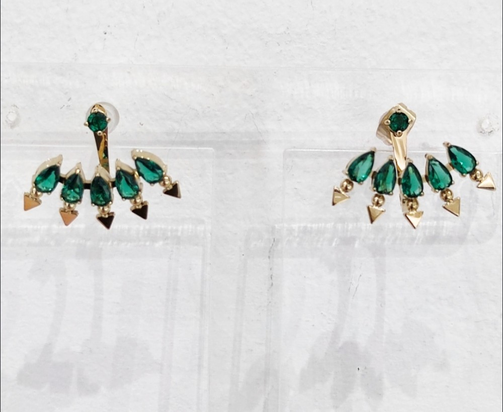 Orecchini In Acciaio Placcato Oro con Zirconi Verdi a Petali Rimovibili