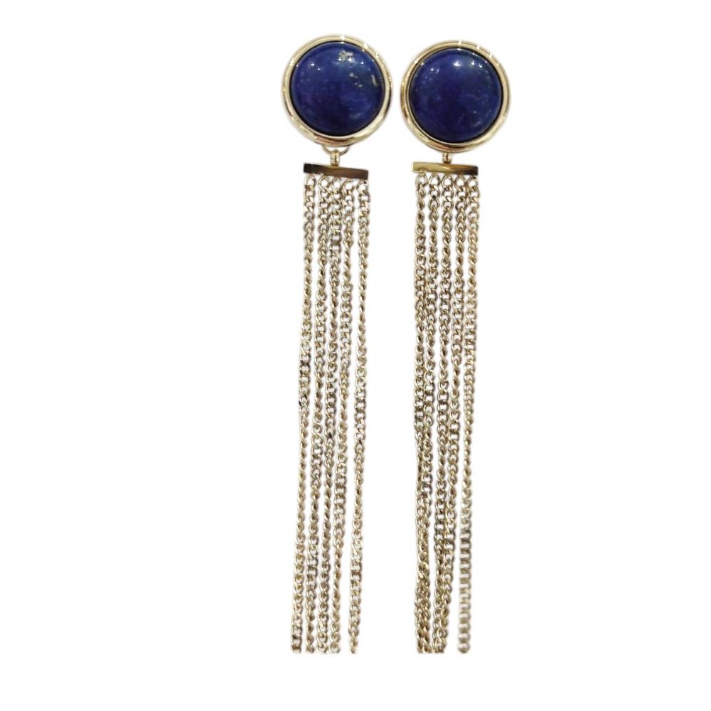 Orecchini In Acciaio Placcato Oro con Multifilo Rimovibile E Pietre Blu