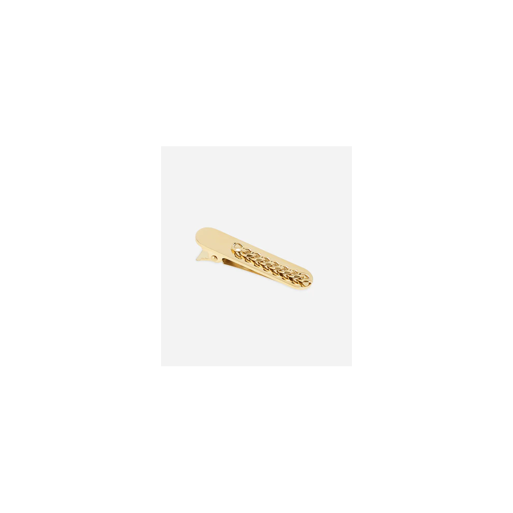 Acciaio semplice o placcato in oro fino tramite ionizzazione, costituito da un'asta che scorre nel capello su cui è fissata una catena.