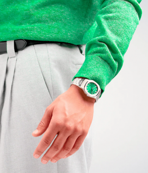 Nuovo Automatico da 36 mm rifinito con una cassa più sottile, che abbina finiture a raggi di sole a un quadrante verde royal.