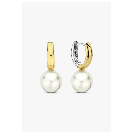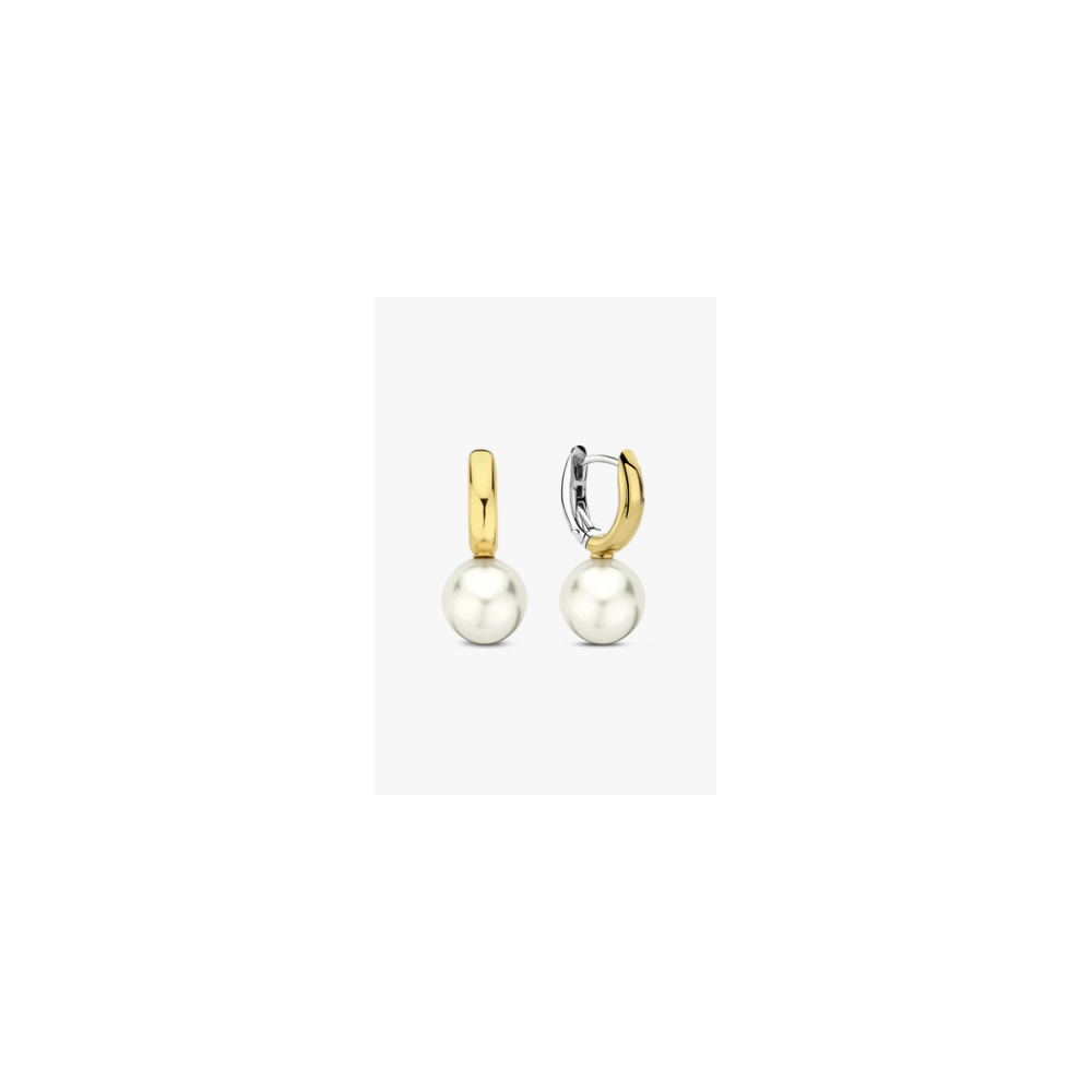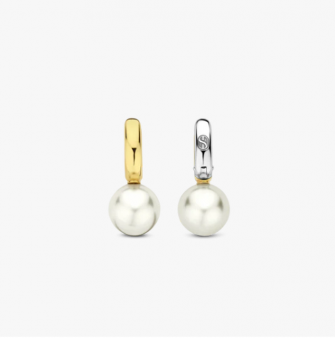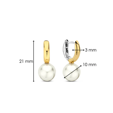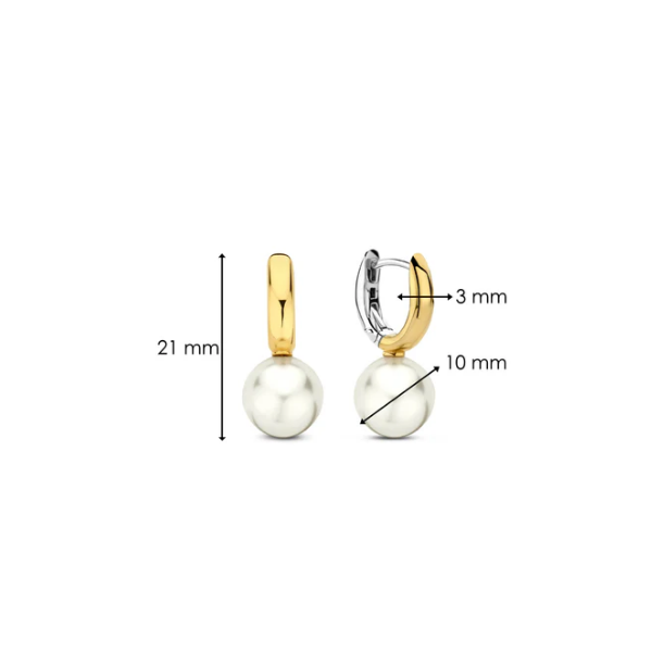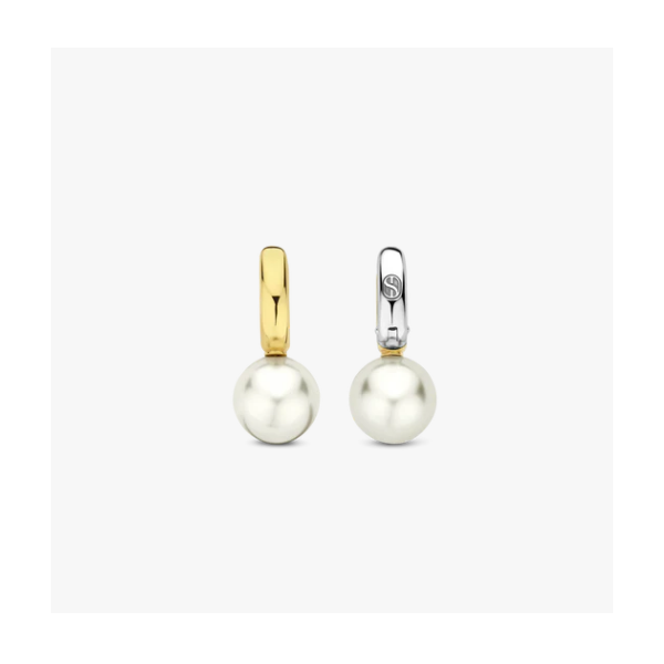 Orecchini In Argento 925%, Modello Con Cerchietto Bicolor e Perla Sintetica Tonda Da 10 mm.