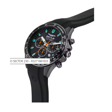 OROLOGIO SECTOR 230 - R3271661033 - Genere : Uomo, Materiale e finitura cassa: Acciaio, Materiale sintetico, Misura cassa: 43.00mm, Spessore cassa: 12.00mm, Finitura cassa: Lucido, Colore cassa: Nero, Vetro: Vetro minerale, Materiale cinturino: Plastica, Colore cinturino: Nero, Chiusura: Fibbia ardiglione, Movimento: Quarzo, Water resistant: 10 atm.
