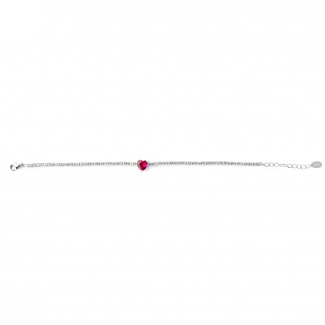 Bracciale In Argento 925 Modello Tennis, Con Zirconi Bianchi E Cuore Rosso.