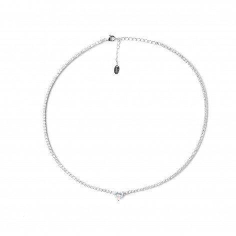 Collana In Argento 925% Con Zircone A Forma Di Cuore Bianco E Collana Incastonata Di Zirconi