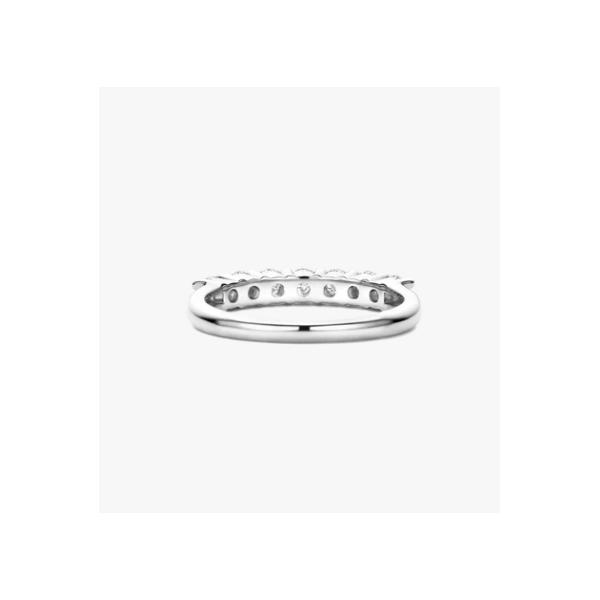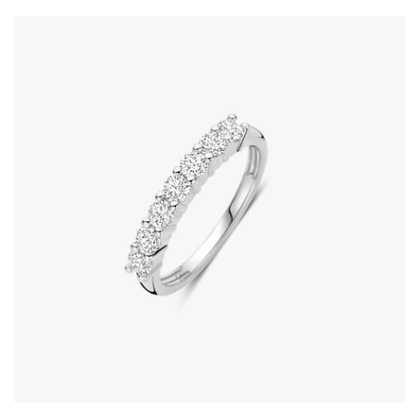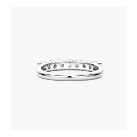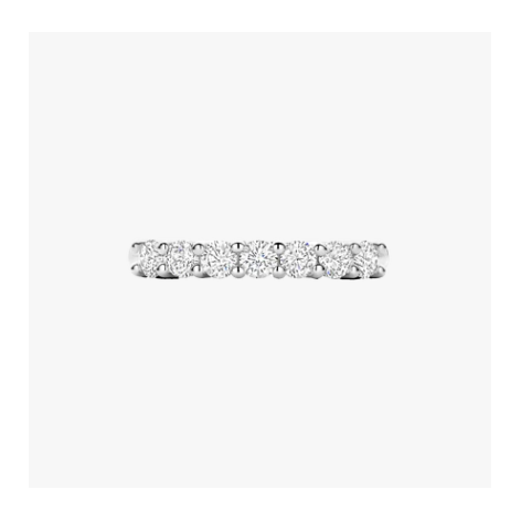 Materiale: argento 925 (sterling silver)Finitura: placcatura in platino, effetto lucido a specchioMontatura: fila sottile in linea continuaColore metallo: tonalità fredda (platinum finish)Proprietà: nickel-free, ipoallergenicoStile d’uso: anello lineare e sottile, adatto a indosso singolo o in composizione (stack)Pietre: 7 zirconi cubici bianchi, taglio brillante