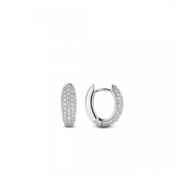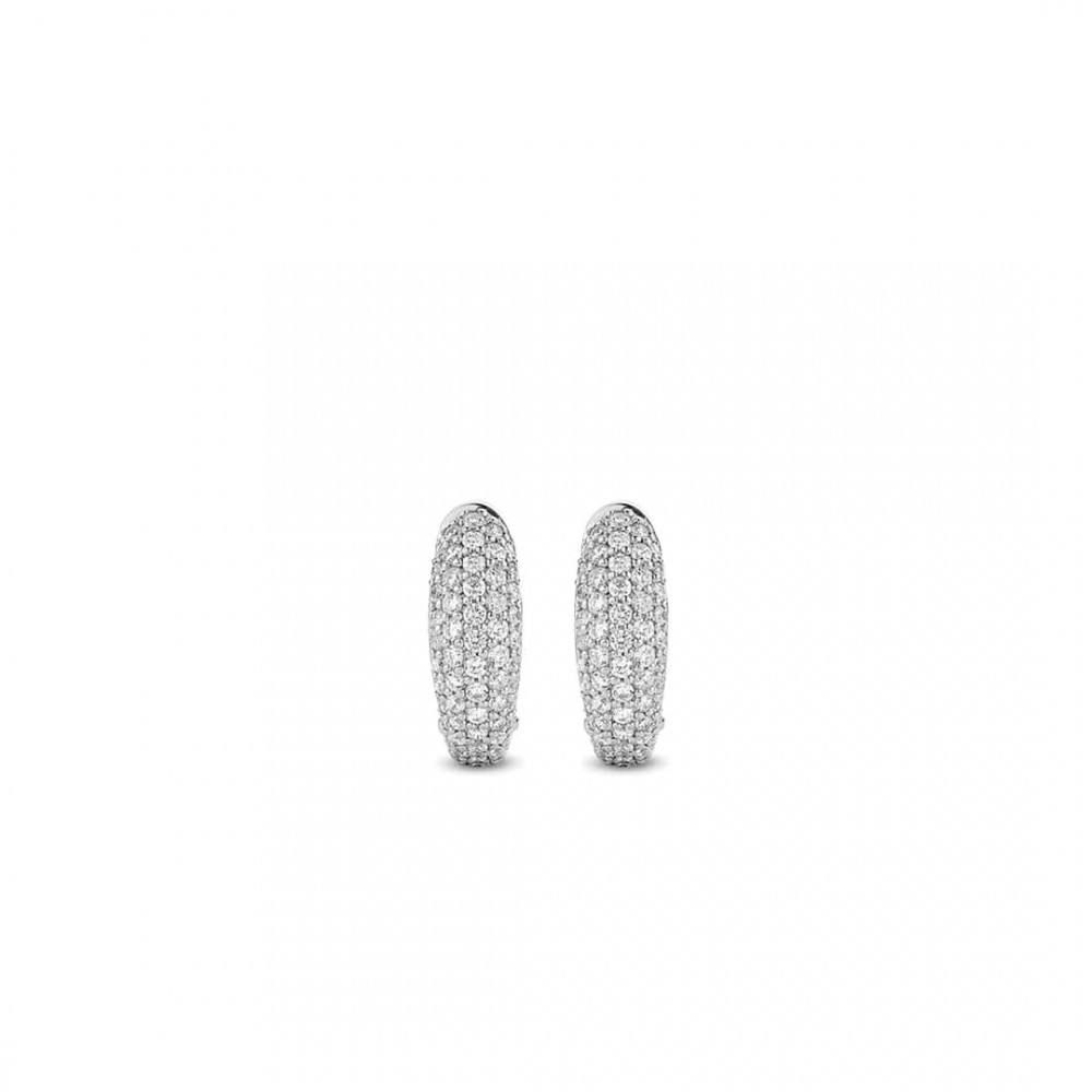Orecchini In Argento 925%, Modello A Cerchio Con Zirconi Bianchi