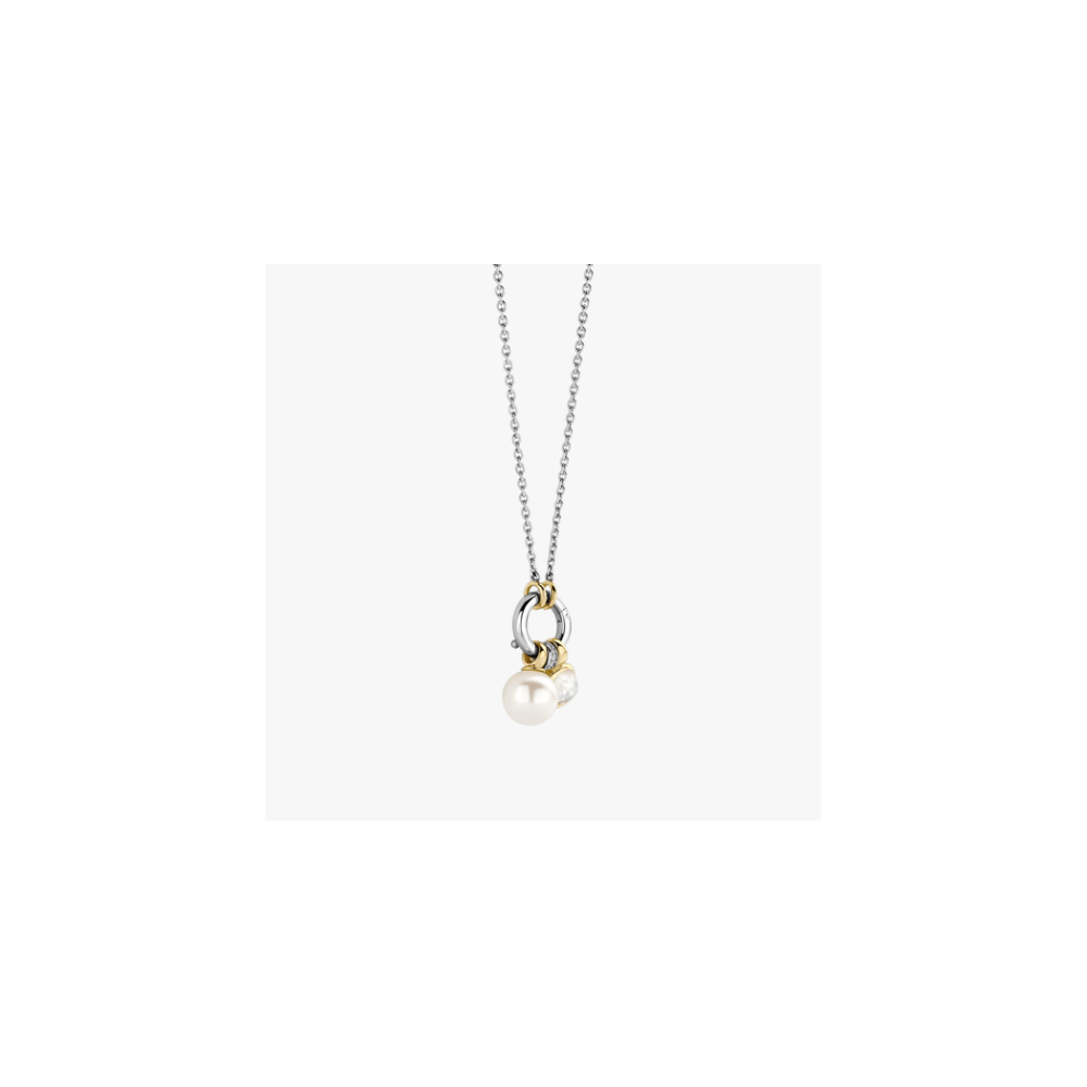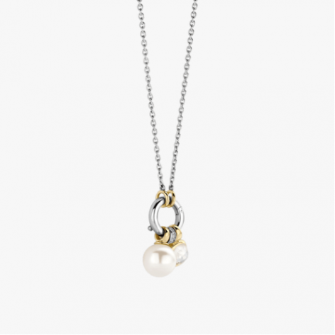 Collana In Argento 925%, Con Pendente Con Perla Sintetica E Zirconi Bianchi.