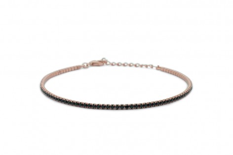 Collana In Argento 925 Rosé Modello Tennis con Zirconi Neri Da 2 mm.
