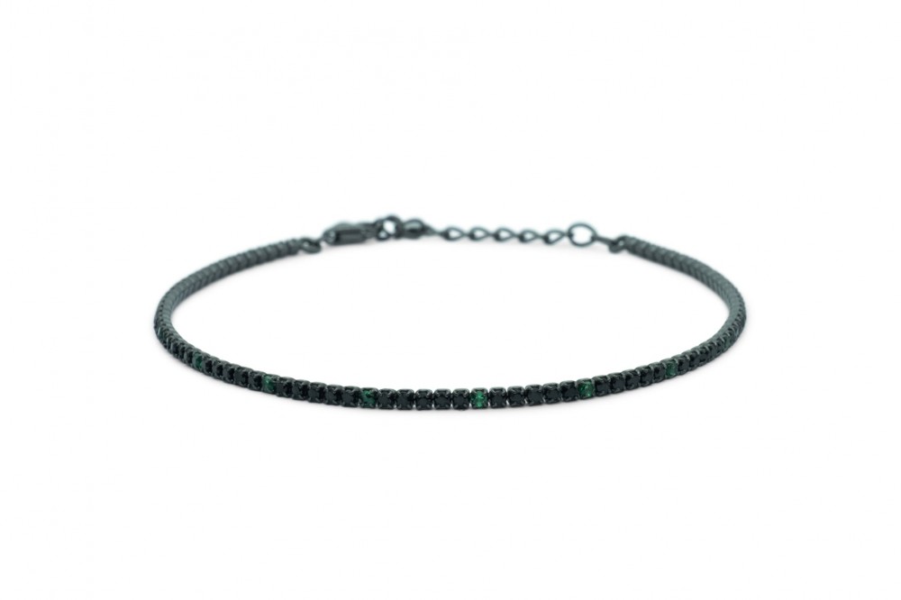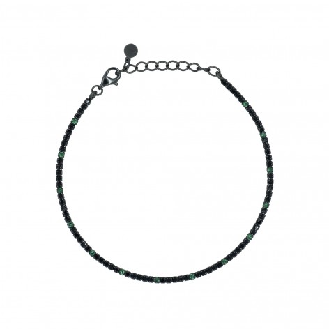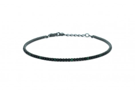 Collana In Argento 925 Nero Modello Tennis con Zirconi Neri Alternati Ai Verdi Da 2 mm.