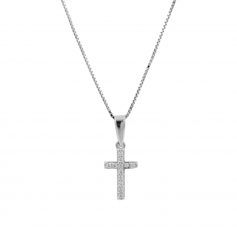 Collana In Argento 925% Con Pendente A Croce Da 1 cm Incastonata Di Zirconi Bianchi.