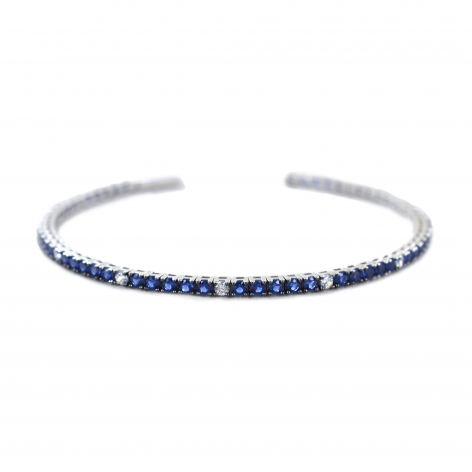 Bracciale Tennis In Argento 925%, Impreziosito Da Zirconi Blu Intervallati Da Zirconi Bianchi Da 3 mm. Chiusura A Scomparsa. Lunghezza 20 cm.