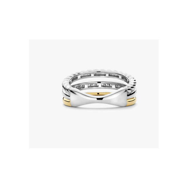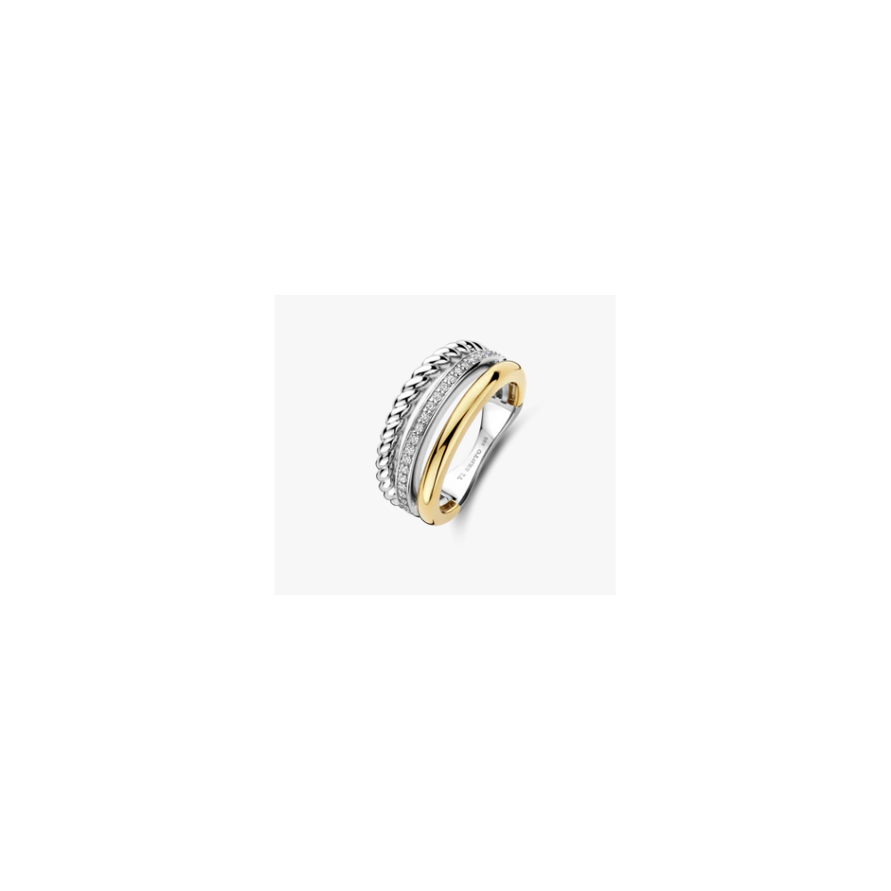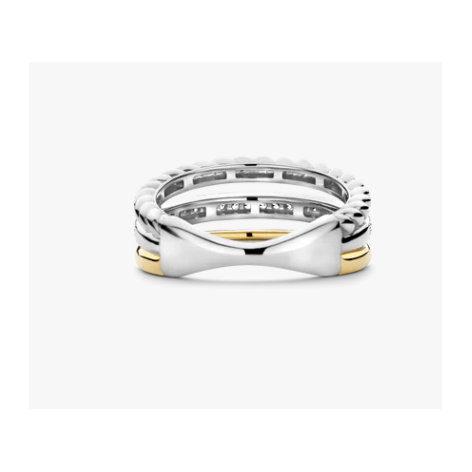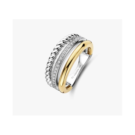 Anello In Argento 925% Con Intreccio Dorato E Silver Con Zirconi Bianchi