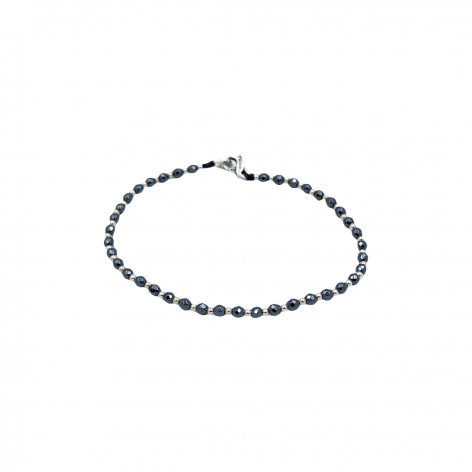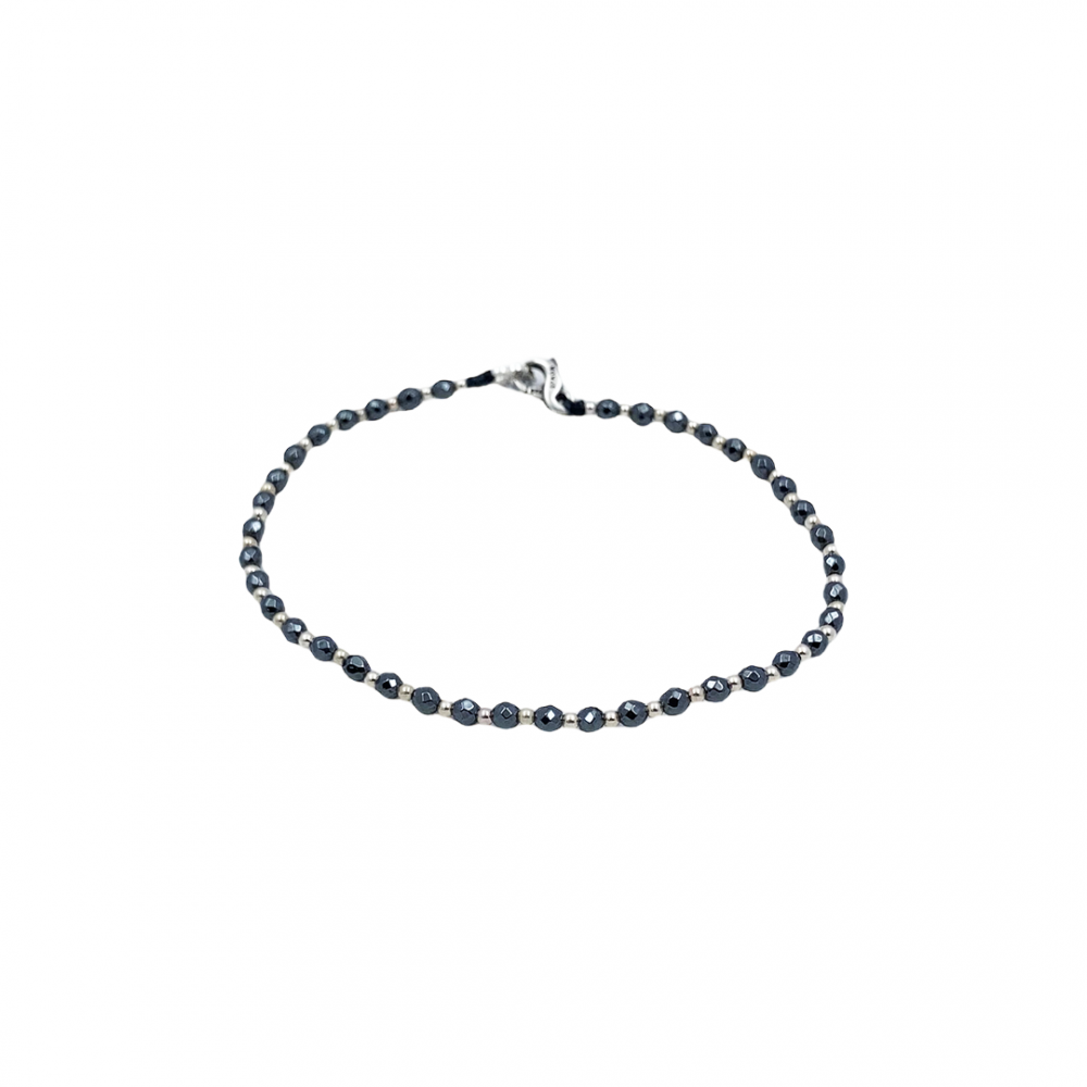 Bracciale In Metallo Placcato Argento Con Ematite E Piccole Sfere D'Argento.