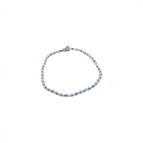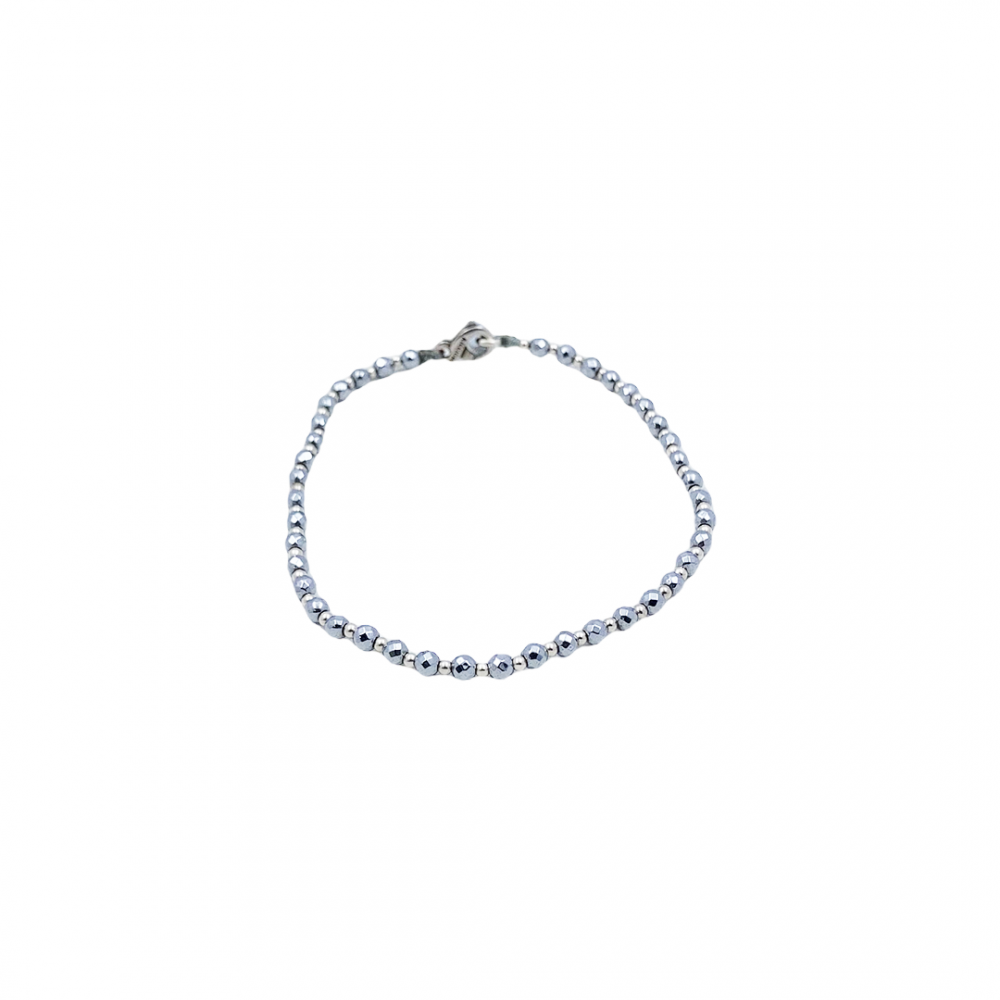 Bracciale In Metallo Placcato Argento Con Ematite E Piccole Sfere D'Argento.