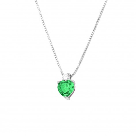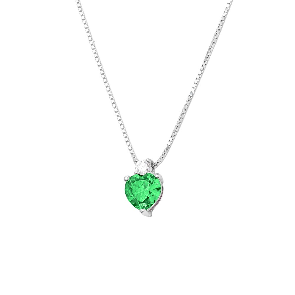 Collana In Argento 925 Punto Luce, Con Zircone Centrale A Cuore Verde E Un Zircone Bianco