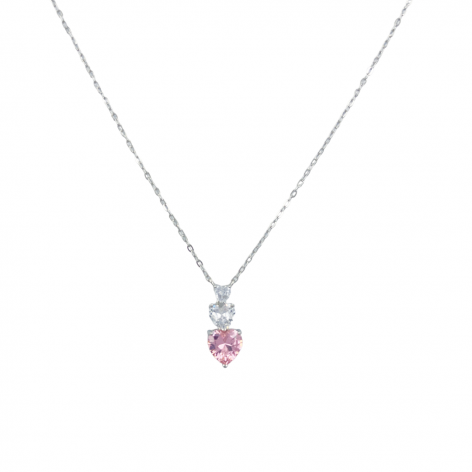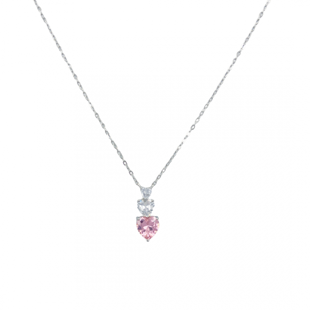Collana In Argento 925 Con Pendente Composta Da Tre Zirconi A Forma Di Cuore Di Grandezza Scalare, Di Cui Due Bianchi E Il Terzo Rosa