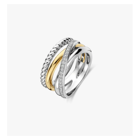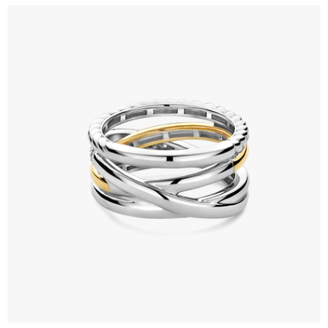 Anello In Argento 925% Con Intreccio Dorato E Silver Con Zirconi Bianchi