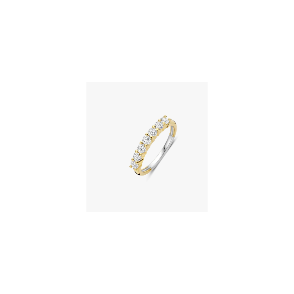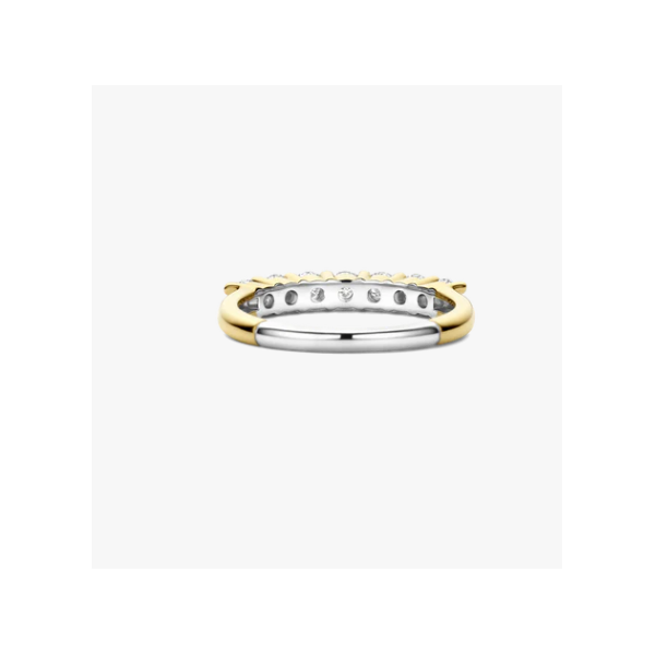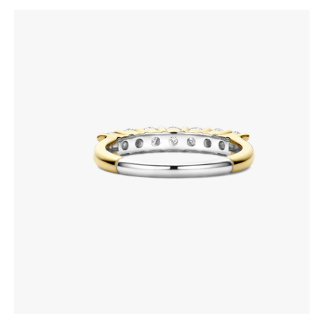 Materiale: argento 925 (sterling silver)Finitura: placcatura in oro, effetto lucido a specchioMontatura: fila sottile in linea continuaColore metallo: tonalità fredda (platinum finish)Proprietà: nickel-free, ipoallergenicoStile d’uso: anello lineare e sottile, adatto a indosso singolo o in composizione (stack)Pietre: 7 zirconi cubici bianchi, taglio brillante