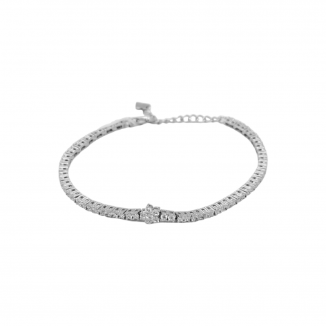 Bracciale In Argento 925% Con Zirconi Bianchi E Fiore Bianco Centrale