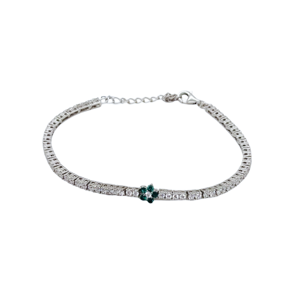 Bracciale In Argento 925% Con Zirconi Bianchi E Fiore Verde Centrale