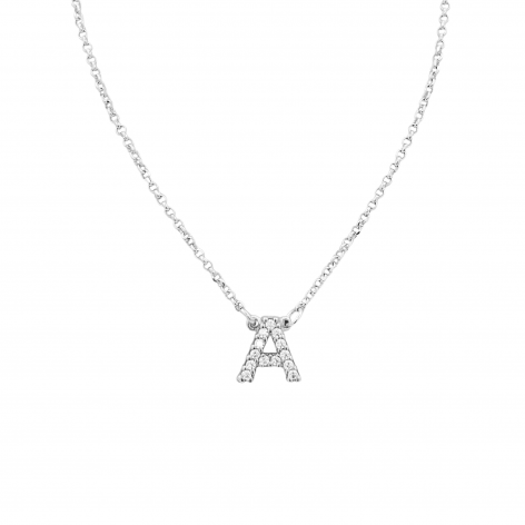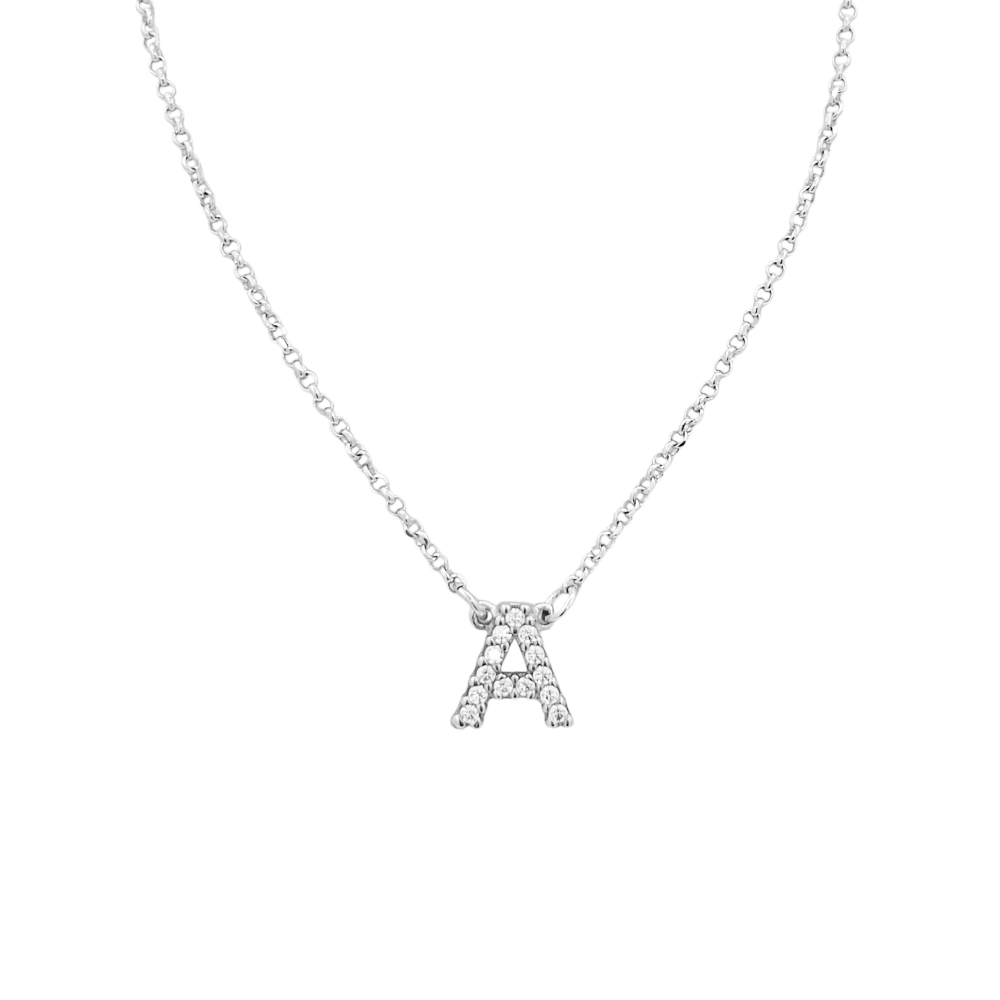 Collona In Argento 925% Con Pendente Lettera A Da 1 cm Con Zirconi Bianchi.