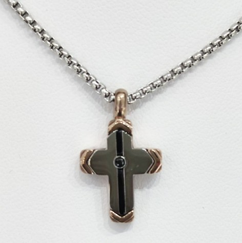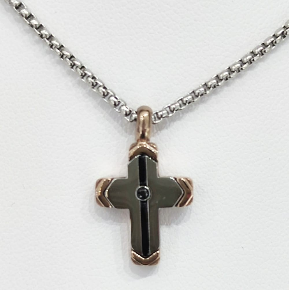 Collana In Acciaio 316L Ipoallergenico Con Croce e Maglia Rollò.