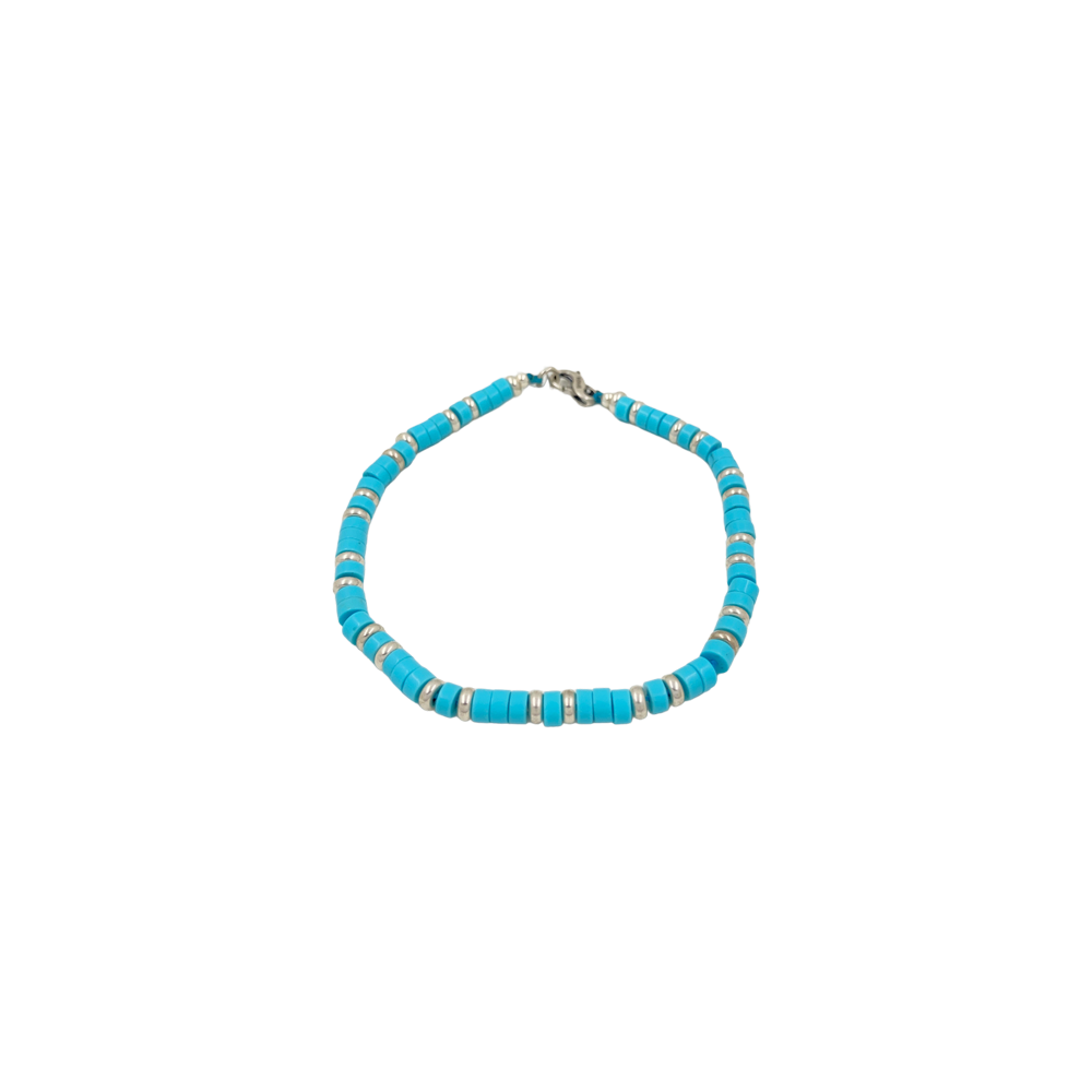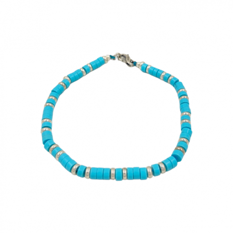 Bracciale in Argento 925 con Rondelle in Pietra Naturale Turchese, realizzato artigianalmente in Italia da Spadarella Gioielli.