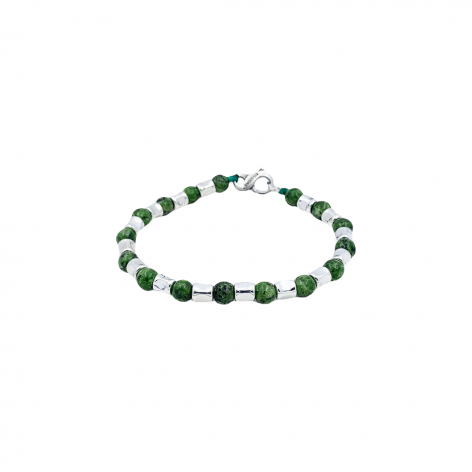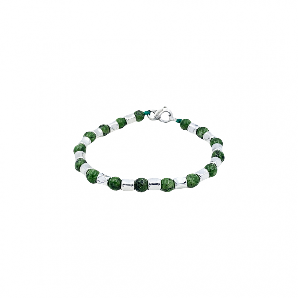 Bracciale In Metallo Con Dettagli In Argento 925% Ed Petre Naturali Verdi.