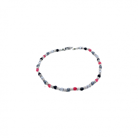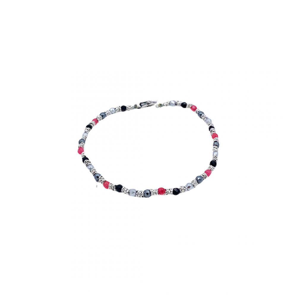 Bracciale In Metallo Realizzato Con Anellini In Argento 925% Ed Ematite Rossa E Nera.