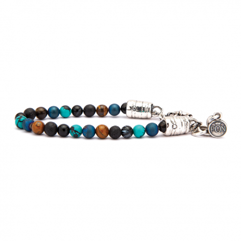 Bracciale In Acciaio Composto Da Occhio di Tigre, Lavica Ed Agata Satinata Blu