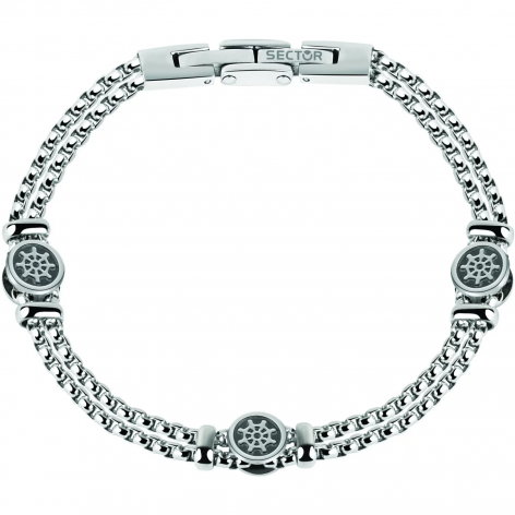 Bracciale In Acciaio Con Tre Elementi Tondi Che Raffigurano Il Timone Su Sfondo Nero