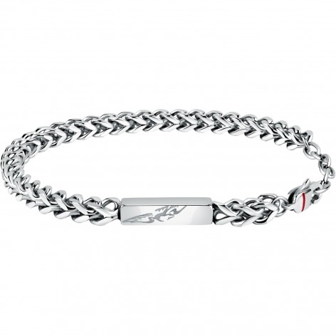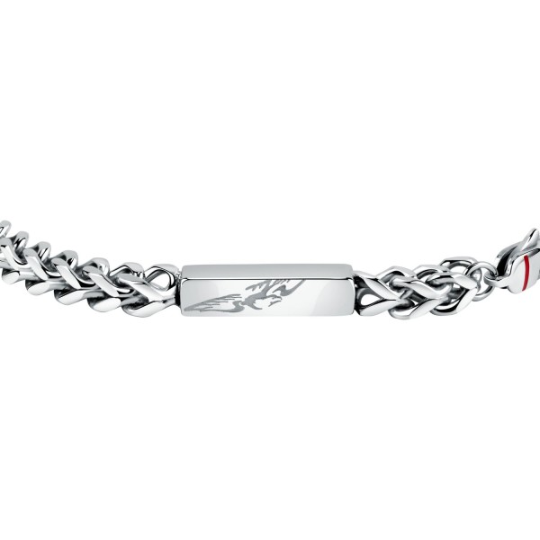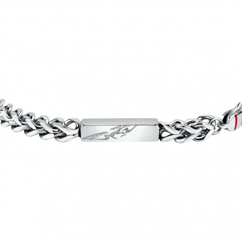 Bracciale In Acciaio Con Piastra Cubica Centrale Inciso Acquila Sector
