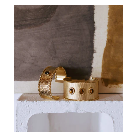Il metallo è lavorato con un effetto inciso, che conferisce a questo pezzo un aspetto vintage. Questo pezzo importante della nostra collezione ricorda i bracciali delle sacerdotesse dell'antica Grecia.