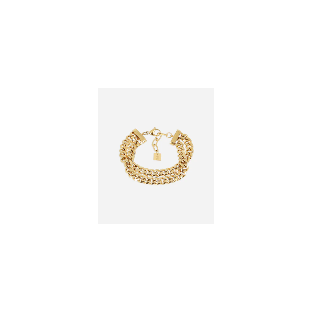Bracciale a maglie multiple in acciaio semplice o placcato in oro fino tramite ionizzazione.