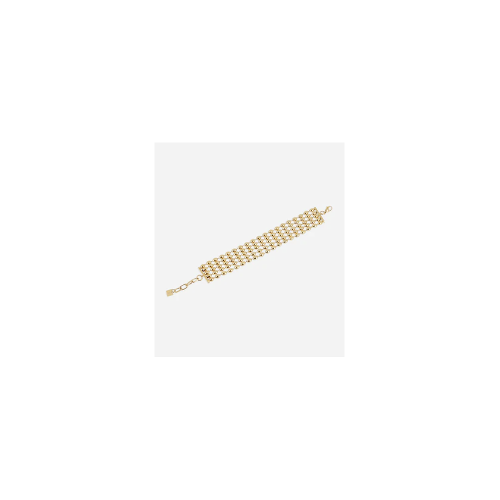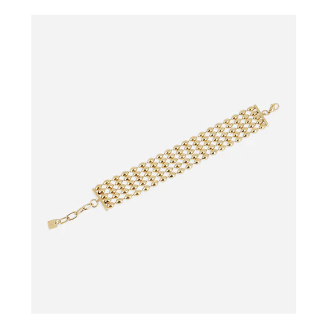 Bracciale multifilare in acciaio semplice o placcato oro fino tramite ionizzazione, composto da 5 file di maglie a chicco di riso.
