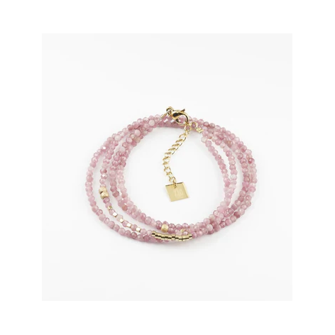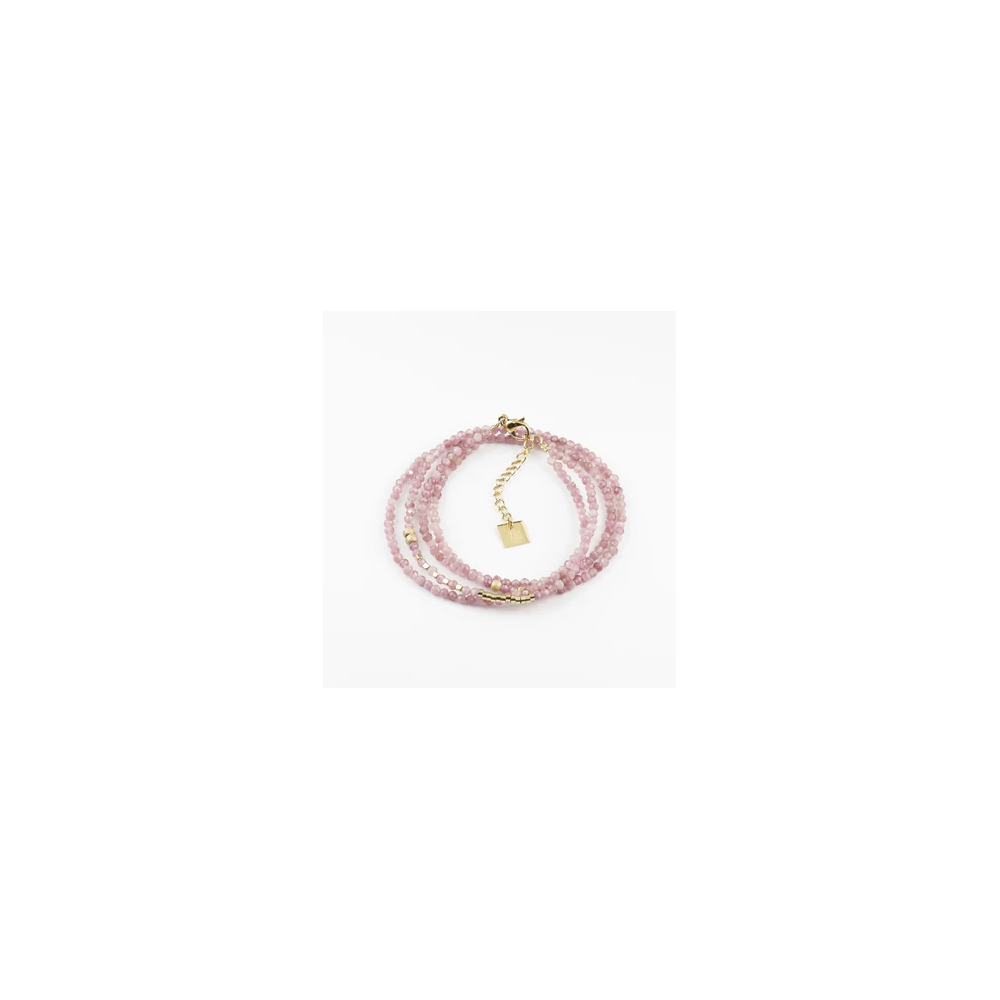 Un bracciale impreziosito da una lunga collana di perle in pietra naturale.