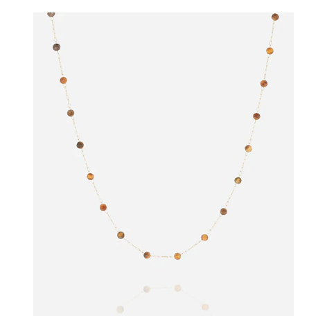 Collana in acciaio placcato oro (mediante placcatura in oro fino tramite ionizzazione) composta da piccole pietre naturali colorate.