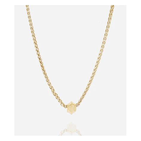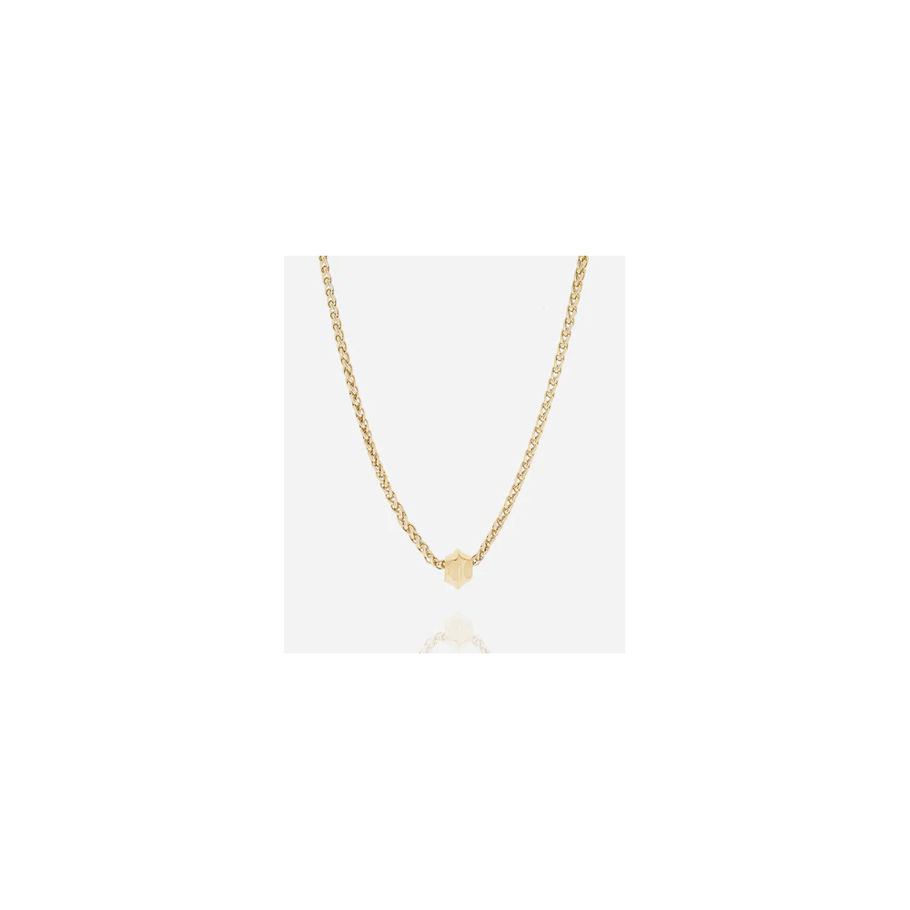 Collana con maglie in acciaio semplice o placcata in oro fino tramite ionizzazione, con pendente in acciaio.