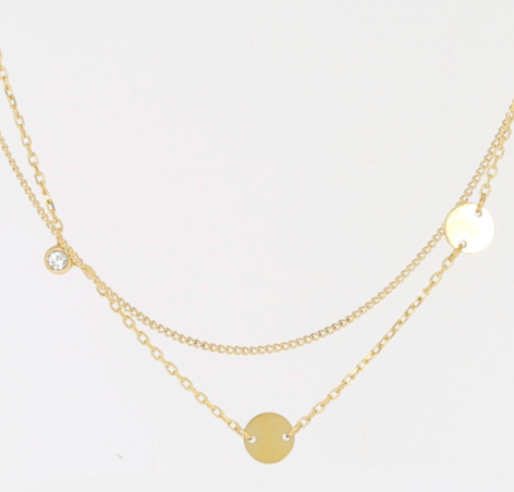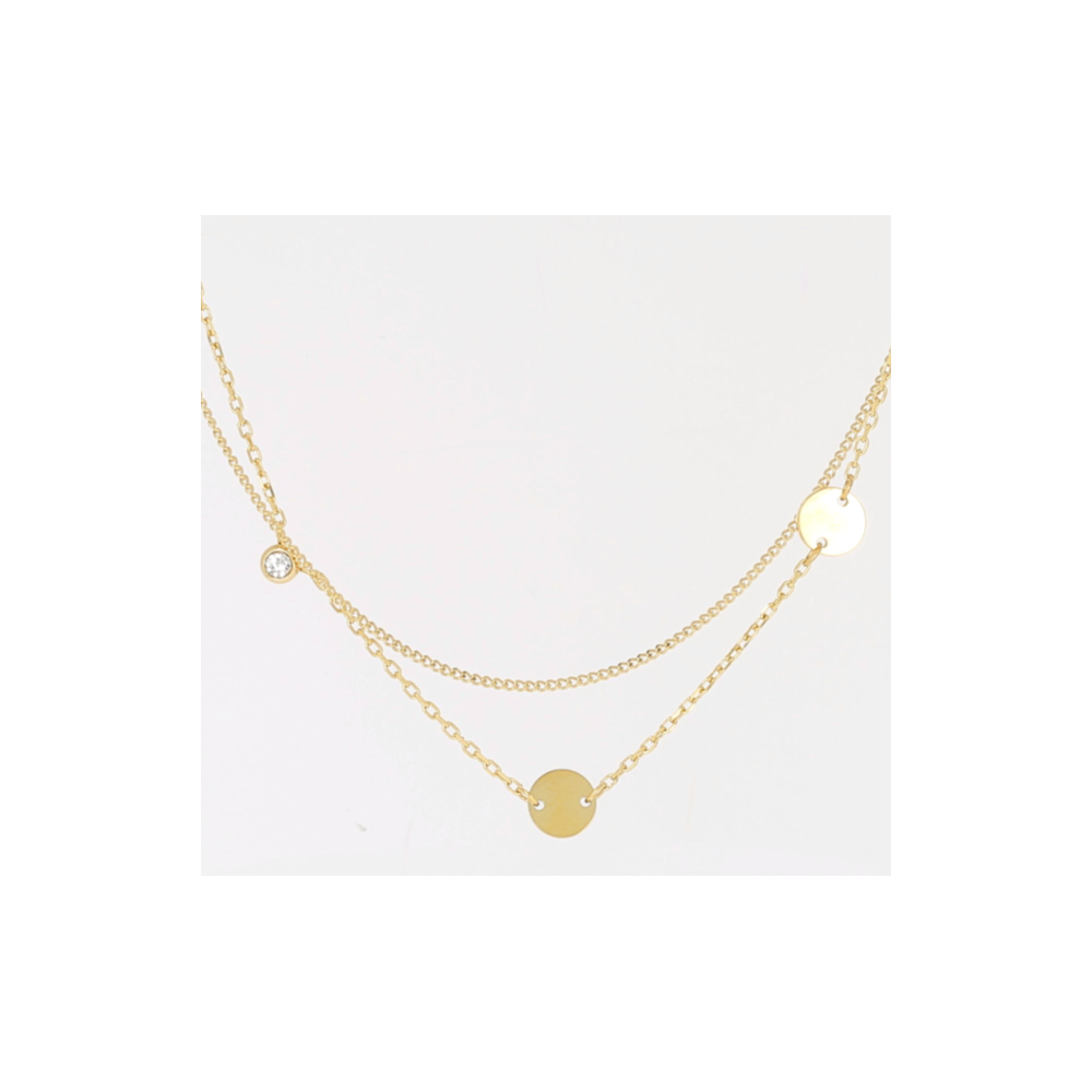 Collana In Acciaio Inox Dorato Doppio Filo Con Punto Luce Laterale e Piastrine Tonde Lucide