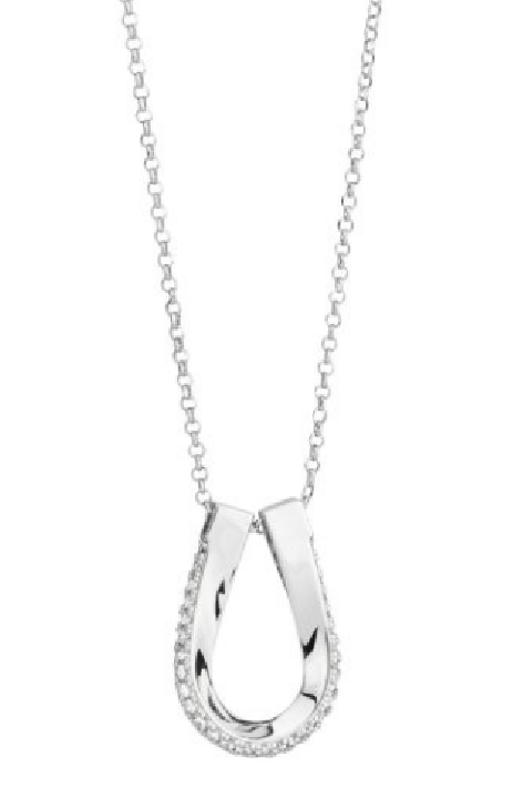 Collana rodiata con pendente dalla forma a goccia definita da zirconi