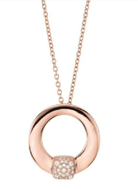 Girocollo placcata oro rosa con pendente a modulo circolare piccolo con quadrato in pavè di zirconi.