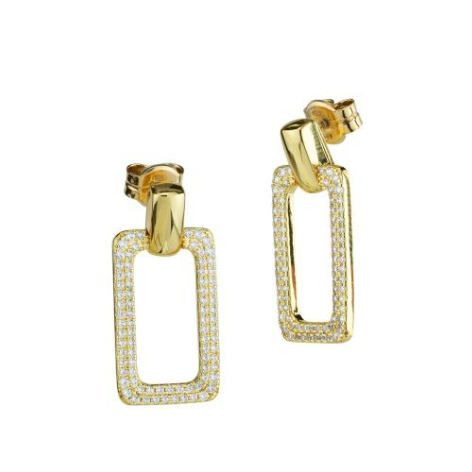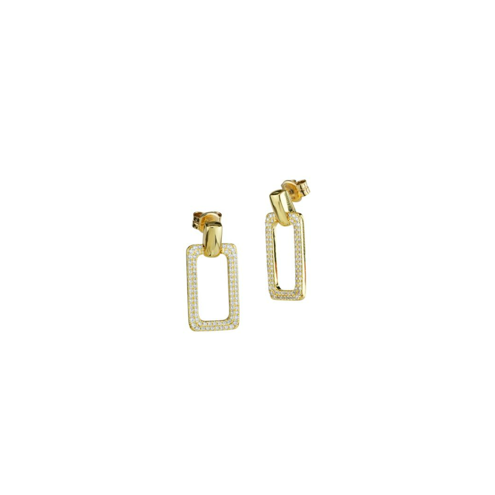 Orecchini pendenti in argento placcato oro giallo con moduli rettangolari in pavè di zirconi
